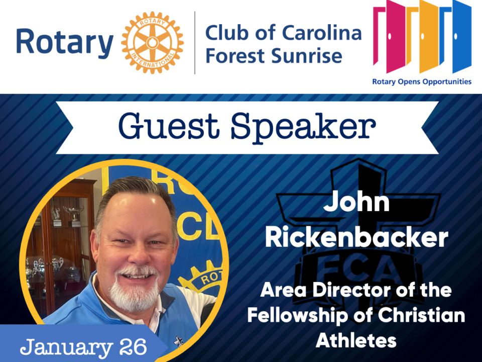 Speaker: John Rickenbacker, Area Director of the Fellowship of Christian Athletes Shamar Brown, our Club’s Immediate Past Treasurer, introduced John Rickenbacker, Myrtle Beach- Conway SC Director of Fellowship of Christian Athletes. John leads the FCA work in the Myrtle Beach-Conway area which includes 70 ministries in 35 different locations where coaches, athletes, and teams participate. […]